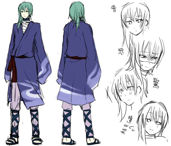 というか企画さま既に開始されてた!!! やばい!!!(><;) 後ろ姿描けぬぇ。 一応全部予定です。追加されたり消されたり。 男キャラ(名前予定:八柳 鵺(やなぎ ぬえ)) 20代前半予定。身長は180前後。 左利きだが左腕がない。 髪の毛超エキサイティング。 記憶が無い。ので、 唯一所持していた短剣を肌身離さず持っている。 体は傷だらけ(主に刀傷)なので包帯だらけ。 記憶がなくなった影響で表情は乏しいが、 別に無愛想なわけではない。 ので、しゃべることはしゃべる。 人と一緒にいることは嫌いじゃない。 人を傷つける争いは嫌い。 人形屋を経営している。(ぬいぐるみからからくり人形まで) 常に裁縫道具一式を持ち歩いている。 甘いものが好き。猫舌。 女性恐怖症だが、無表情なためあまり気づかれない。 が、よく見てみるとブルブルしてる。 女キャラ(名前予定:行河 流(いくかわ ながる)) なんかデザインはこっちのが気に入ってr(ry 10代後半予定。身長165前後。 眉毛ちょっと太い。 早くに戦争で親をなくし、 その場にいた天人に拾われ育てられた。 その後その天人も亡くなり、成り行きで春雨に所属。 喜怒哀楽がよく表に出る。よく笑ってる。 人を騙すことや殺すことに何も感じない性格。 大人っぽい人が好き(←)。 極度の味覚音痴(天人と暮らしていたせい?)。 天人が大好きで天人を嫌う人が嫌い。 続きでネタバレ?(過去です><;)関係です。 メモなので誰も見てないし 隠す必要ないですが。いいじゃん隠したいんだから!